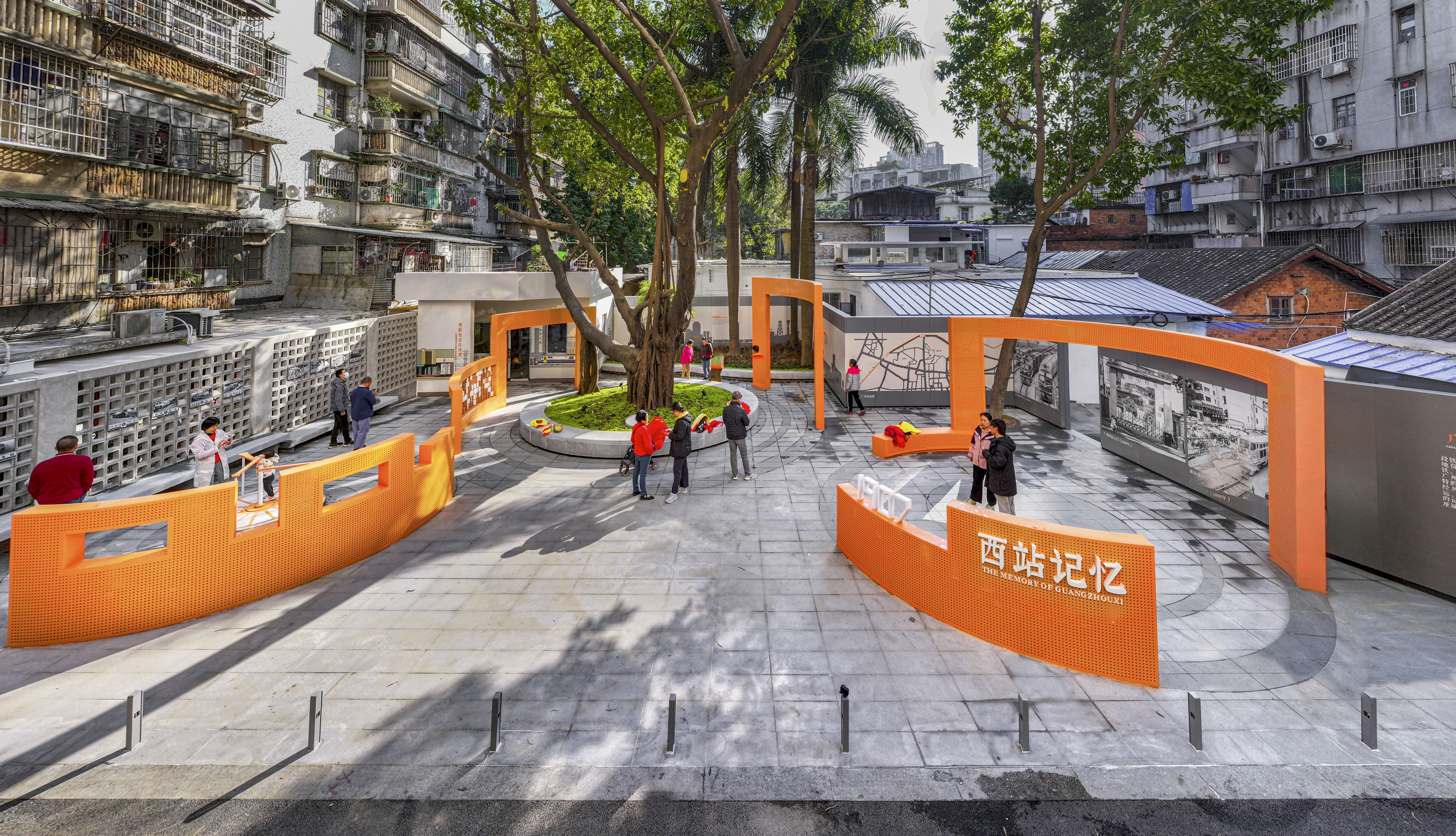 荔湾站前街西站社区,是上世纪80、90年代兴建的铁路职工宿舍,见证了广州西站铁路经济的发展,被誉为荔湾的“铁半城”。历经三十余年变迁,社区面临人口老龄化、基础设施缺失、公共空间不足等问题。社区以激活闲置空地为抓手,打造“西站记忆”口袋公园,结合居民需求,拆除临街围墙,打开公共空间,通过保护古榕生态、完善公共设施、塑造文化节点,将铁路记忆融入城市空间再造,终将闲置空地变成生活秀场、老幼乐场和文化展场。