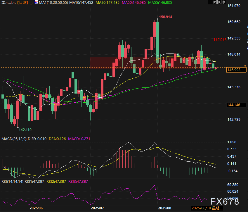 鉴于8月美元兑日元多次在147.00下方反弹,交易员应对“首次收于50日均线下方”保持谨慎,尤其是当前正值月末资金调仓窗口。若连续两个交易日收于该均线下方,将进一步强化下行逻辑。
