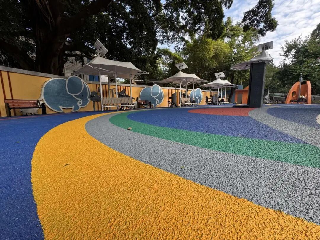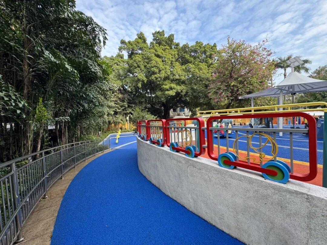 运动地面设施同步升级,保障市民与游客的运动安全。如在宝象乐园入口区域铺设彩色EPDM颗粒地面,并增设塑胶跑道缓冲防滑,呵护膝踝。乒乓球区同步升级为专业丙烯酸面层,弹性足、防滑力强。