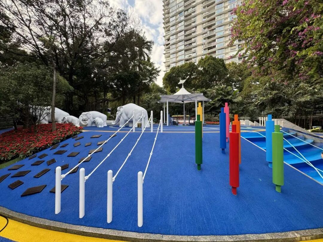 流花棋苑新增两套棋牌桌,满足市民休闲需求。针对儿童群体,公园新增跷跷板、天梯等多样化儿童设施,让孩子们在安全环境中尽情玩耍,营造温馨的亲子运动时光。