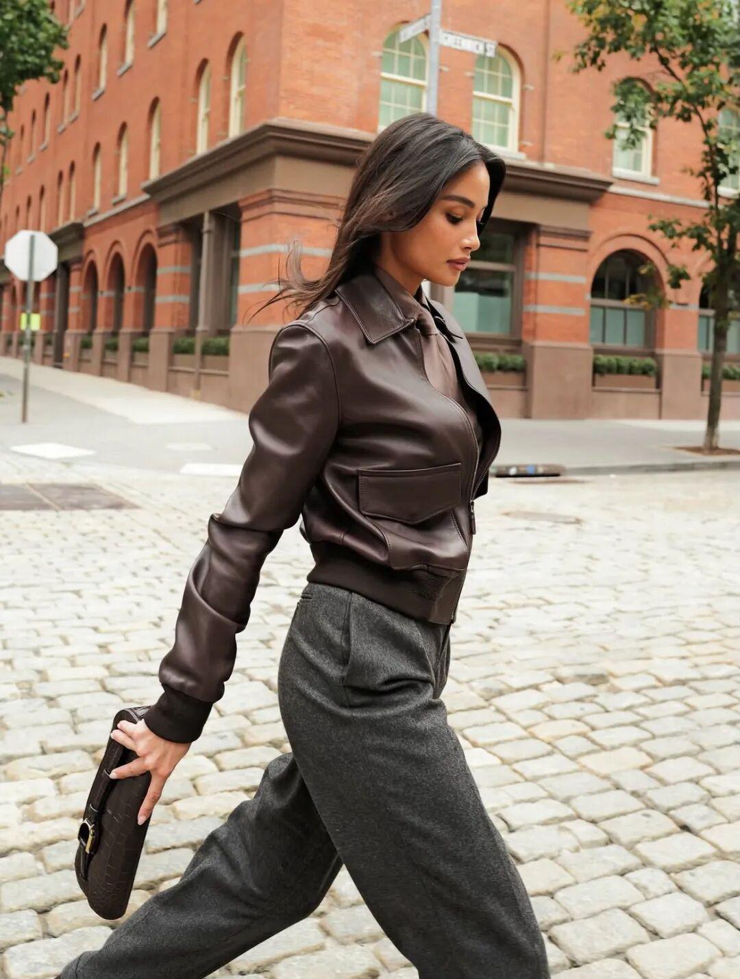 她们很多都穿夹克配裤装,时髦、帅气、强大,并且一点也不刻意,感觉平时都是这么穿的。