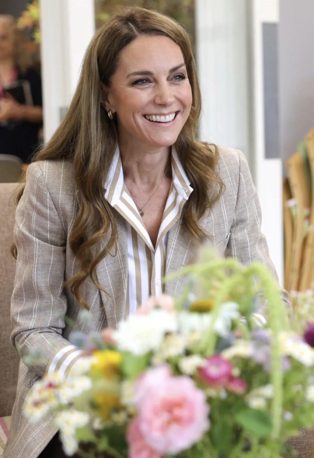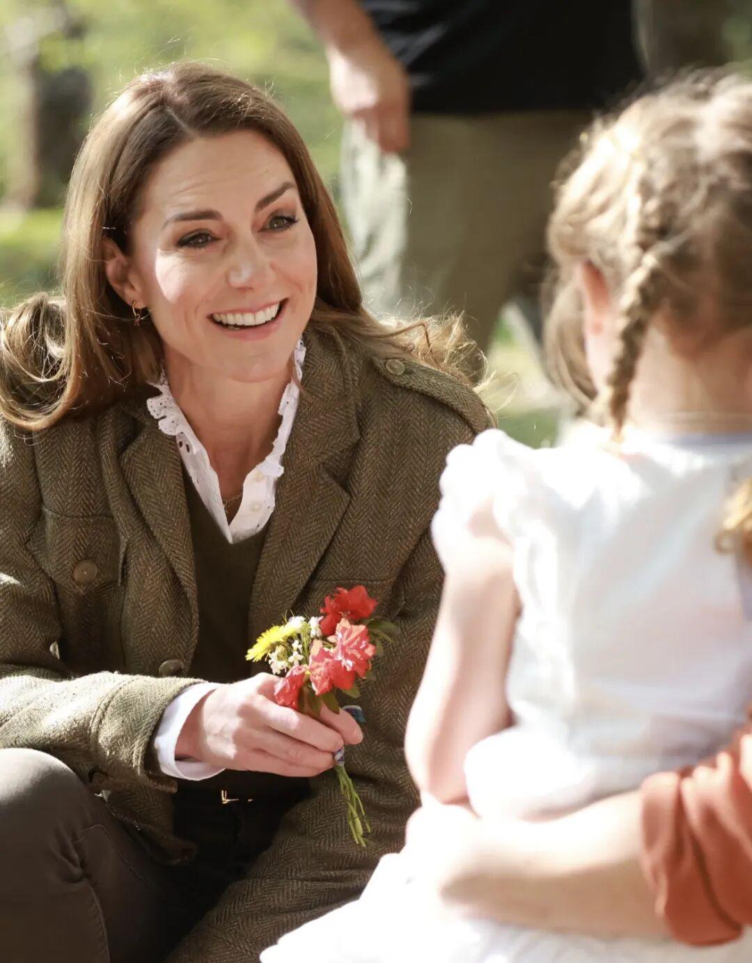 所以放心啦,她现在挺精神的。今年2月她访问威尔士梅多街社区花园的时候,就还是我印象中的那个温柔得体的凯特王妃。