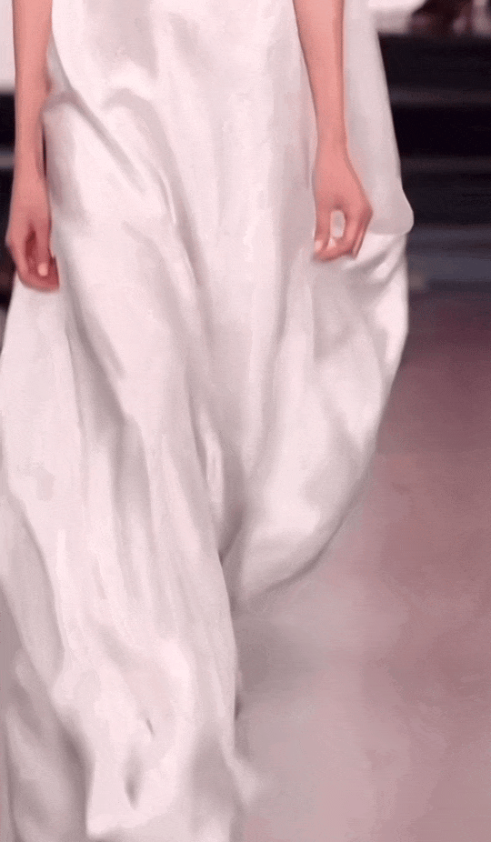 丝质的光泽顺着身体自然垂落,有一种流畅而精确的视觉效果。光打在面料上的时候,仿佛整个人都被月光罩住了,太美妙了。