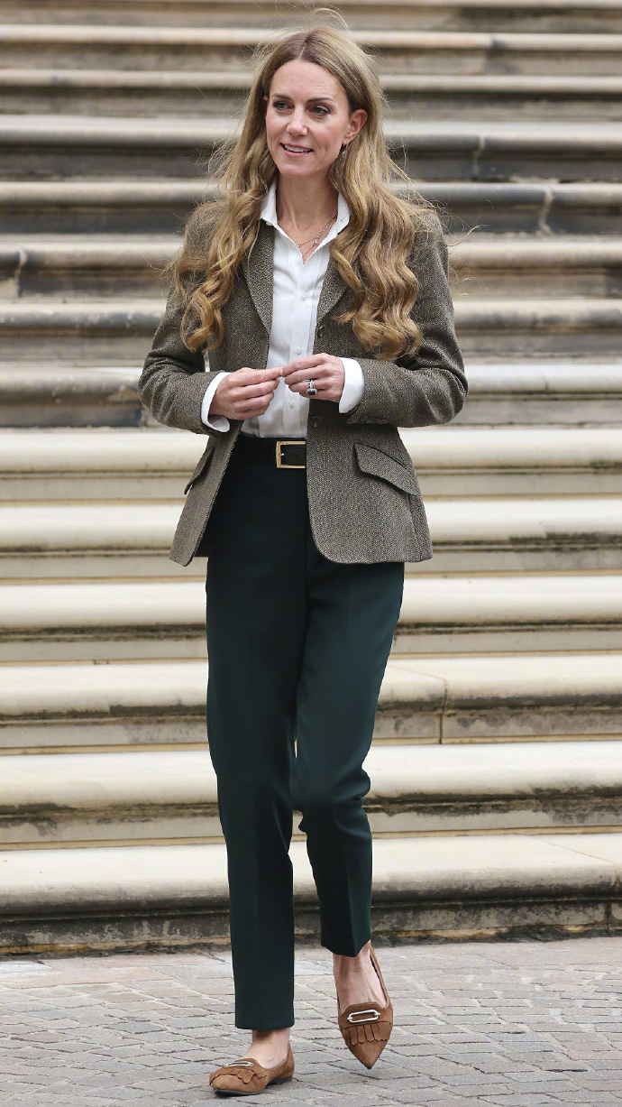 上周她和威廉王子一起访问自然历史博物馆的时候, 她穿得,依然简单干练。经典的粗花呢西装外套散发出典型的英式学院派优雅和端庄。