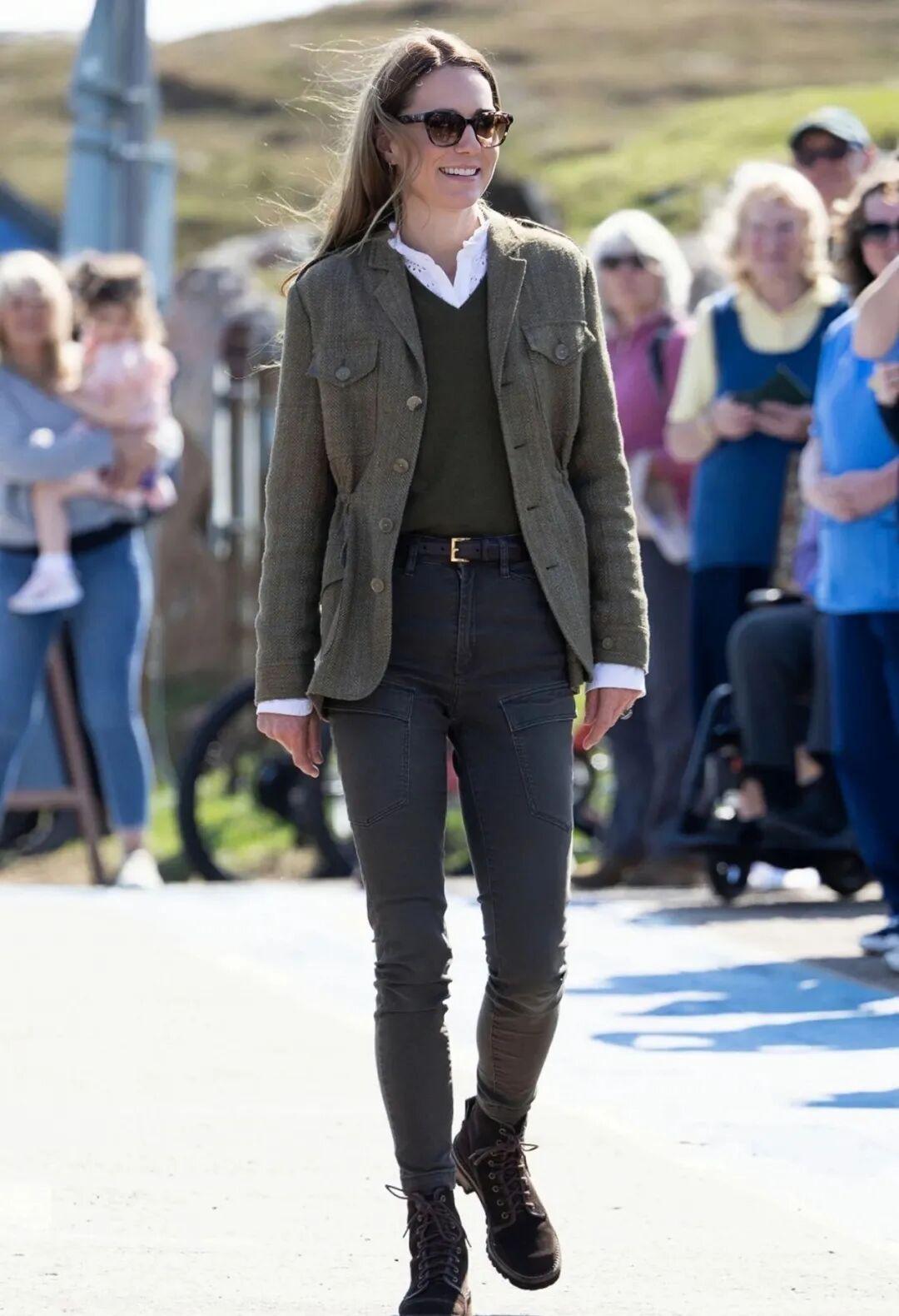 4月访问苏格兰阿杜拉森林的时候,她换了一身王室代表性的猎装造型。复古的Ralph Lauren夹克,让她看上去气场强大、英姿飒爽。